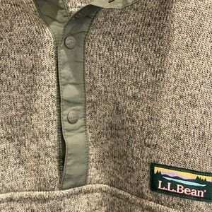 L.L. Bean Mens Green Fleece Pullover 1/4 Snap Long Sleeve Sweater Size XL Tall
