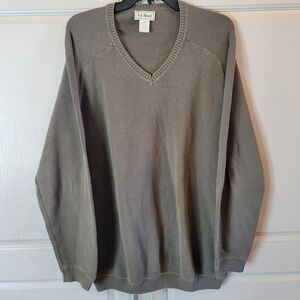 LL Bean Mens Green Knit V-Neck Sweater