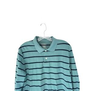 L.L. Bean Men's Green Striped Casual Traditional Fit Long Sleeve Polo Shirt