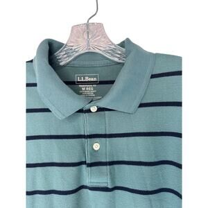 L.L. Bean Men's Green Striped Casual Traditional Fit Long Sleeve Polo Shirt Med