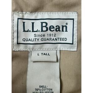 The LL Bean Men's Khaki Gortex Thinsulate Nor'easter Coat in Size LT is a stylish and durable mid-length parka perfect for outdoor activities in the winter season. Made with a cotton blend outer shell and lined with wool and nylon, this coat offers both comfort and protection against the cold weather. With features such as being windproof, water-resistant, and insulated, it is ideal for staying warm and dry in harsh winter conditions. The classic khaki color and solid pattern make it a versatile addition to any man's wardrobe, while the big and tall fit ensures a comfortable and flattering silhouette.