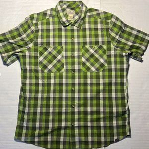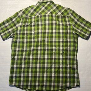 L.L. Bean Mens L Reg Organic Cotton&Recycled Polyester Green Plaid Short Sleeve is preowned, comes from a smoke-free environment.