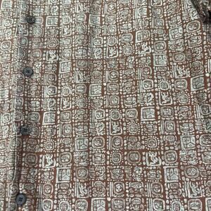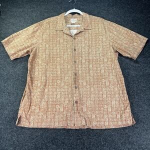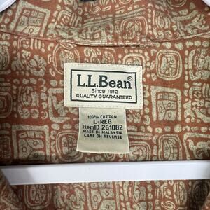 LL Bean Mens L Tropics Short Sleeve Aztec Mayan Hawaiian Button Shirt Red Tiki