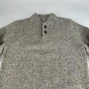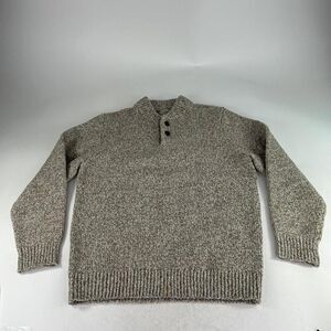 L.L. Bean Mens Lambs Wool Pullover Sweater Siz M Tall 1/4 Button Mock Neck Brown