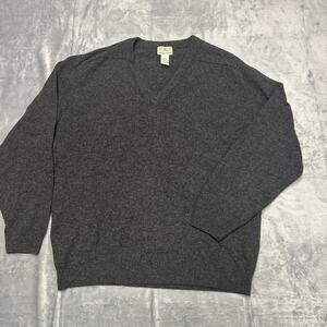 LL Bean Mens Large 100% Lambs Wool V Neck Sweater Pullover Solid Gray Charcoal