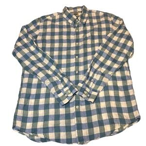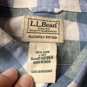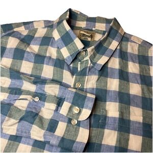 LL Bean Men's Large 100% Linen Peach Gingham Check Slightly Fitted Button Up