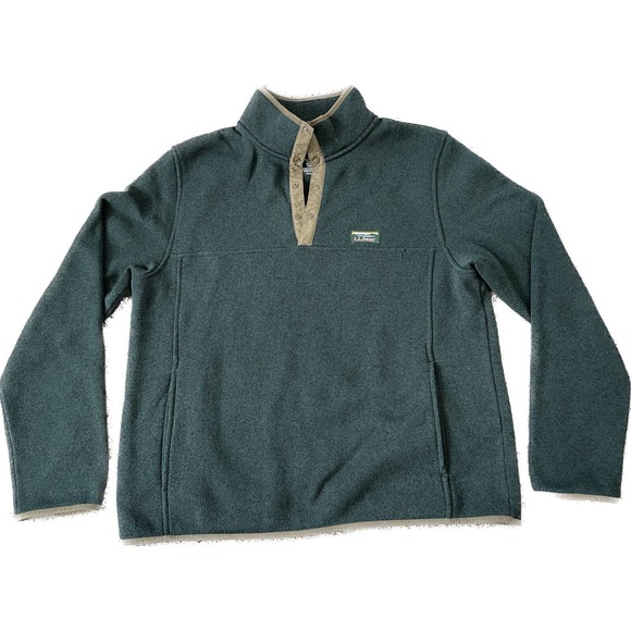 LL Bean Mens Large Pullover Fleece Snap T Green Sweatshirt Jacket