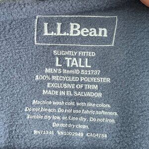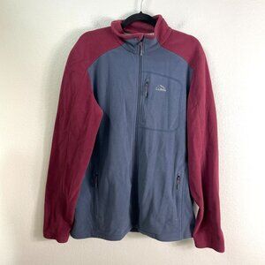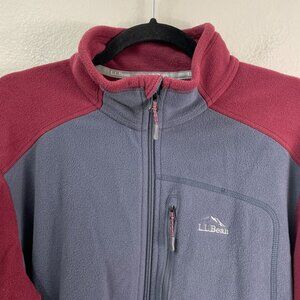 LL Bean Mens Large Tall Slightly Fitted Fleece Jacket Full Zip Up Gray Burgundy