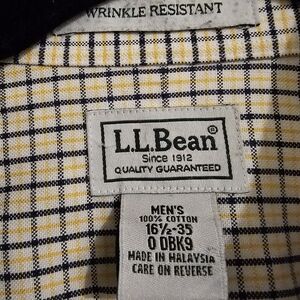 L.L. Bean Men's Long Sleeve White, Yellow, and Blue Checked Oxford. 100% Cotton, Botton Down with Pocket on the Left Chest Area. In Excellent Condition. Perfect for Casual or Business.
