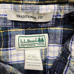 LL Bean Mens Long Sleeve Plaid Flannel Button Up Pockets Size Medium Reg 228061