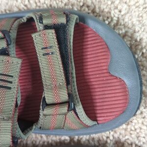Get ready for your next outdoor adventure with these LL Bean rugged all-terrain hiking sandals. These slip-on sandals feature a solid pattern, hook and loop closure, and a light olive color with logo accents. The upper is made of nylon and the lining is synthetic, while the outsole and insole are made of rubber for added comfort and durability. These sandals are perfect for activewear and are lightweight, making them suitable for summer, fall, and spring.