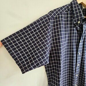 L.L. Bean Mens Navy Blue Plaid Short Sleeve Button-Up Shirt Lg-Reg 100% Cotton