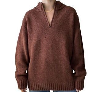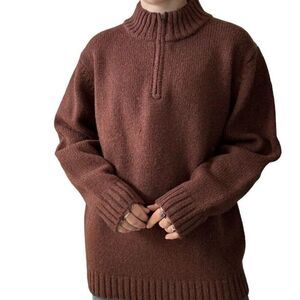 LL Bean Mens Orange Rust 100% Shetland Wool Quarter Zip Henley Sweater Sz L