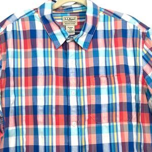 L.L. Bean Men's Organic Cotton Seersucker Button Up Shirt L Reg