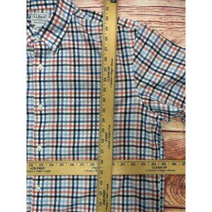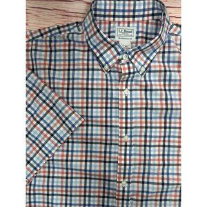 This L.L. Bean shirt features a classic plaid pattern with a traditional fit and short sleeves, ideal for casual or semi-formal settings.