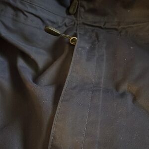 Durable and water-resistant. Ideal for winter days and rain proof. Comfortable fit with adjustable hood and storage pockets throughout with adjustable hood and fleece interior collar. (See photos). Developed for the US military for use in clothing and sleeping bags. PrimaLoft is a down-like insulation that mimics the lightweight compressibility and warmth of down, but continues to insulate even when wet. It has a supple hand that drapes comfortably for activewear.
