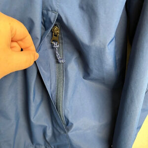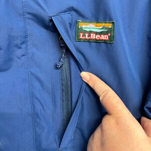 LL Bean Men's Rain All Weather Jacket Medium Navy Blue Hideaway Hood 501838