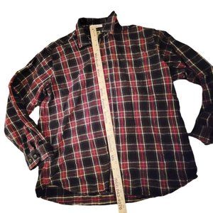 LL Bean Mens Red Navy Blue Plaid Long Sleeve Casual Button Up Shirt Size 48