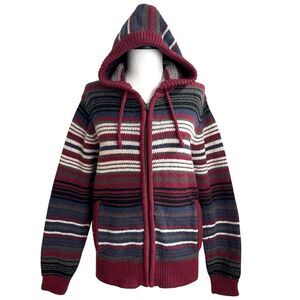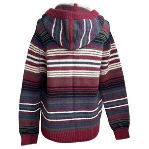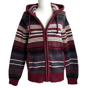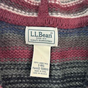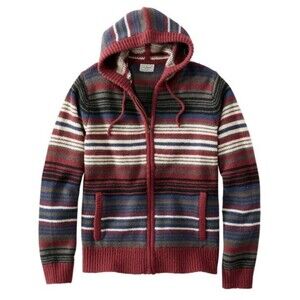 * LL Bean Mens S Ragg Wool Cardigan Striped Hooded Sweater Chunky Cabin Lodge