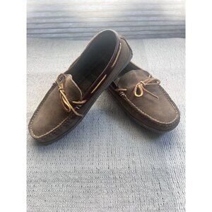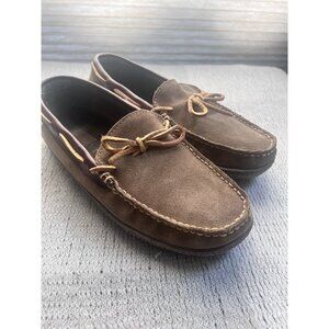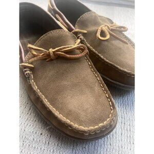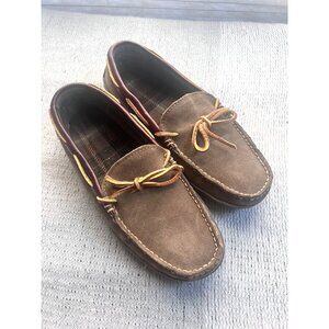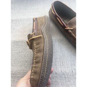 L.L Bean Mens SZ 9 Medium Handsewn Slippers Flannel Lined Tan Slip On Leather
