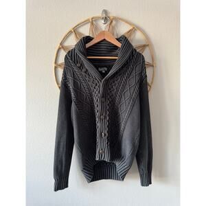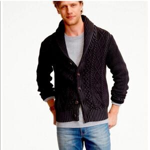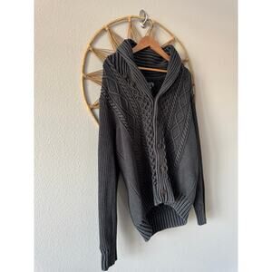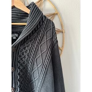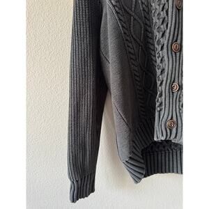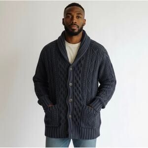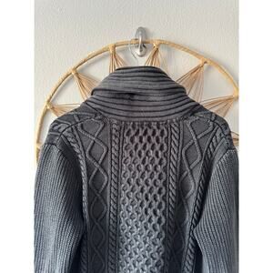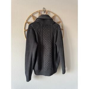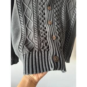 LL Bean Mens Signature Fisherman Cable Knit Sweater Cardigan Charcoal Gray MED