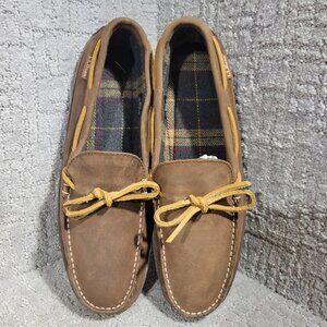 L.L. Bean Men's Size 10M Leather Slip-On Moccasin Slippers Flannel Lined 212164