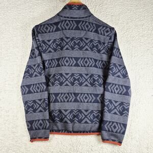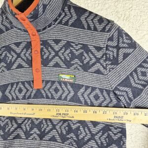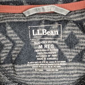 Stay warm and stylish with this L.L. Bean Men’s Slightly Fitted Fleece Pullover in size Medium Regular. Made from 100% polyester, this cozy fleece features a blue and gray Aztec-inspired geometric pattern with contrasting rust-red trim and snap placket for a pop of color.