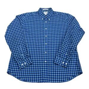 LL Bean Men's Slim Fit Wrinkle Free Blue Plaid Check Shirt XL Preppy Office