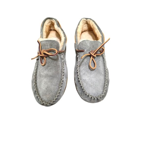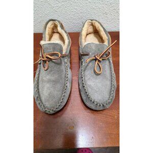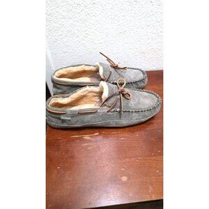 L.L. Bean Men's Suede Moccasin Slippers Faux Shearling Lining Size 13 Gray