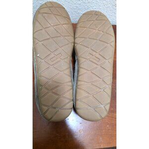 pre owned, Minor wear on soles, slight scuffs on suede, small in stains on top, good conditions.
