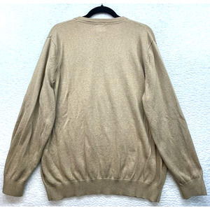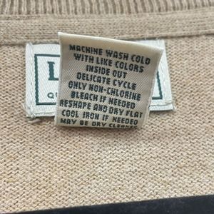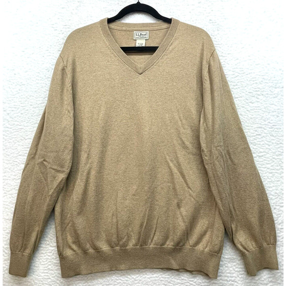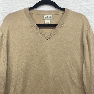 LL Bean Mens Sweater Extra Large Tan Cotton Cashmere V Neck Preppy Cabincore