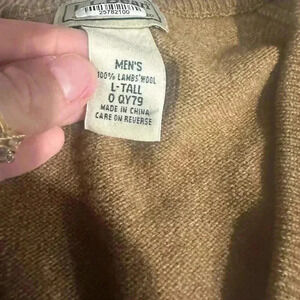 L.L. Bean Mens Sweater Large Brown Lambswool V-Neck Knit Pullover L (Tall)