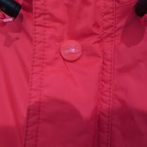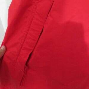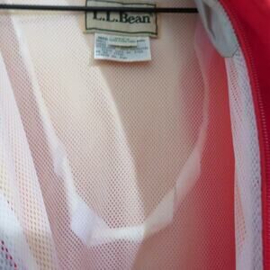 L.L. Bean vintage nylon hooded anorak pullover jacket in red. Pullover jacket, lightweight, durable, and ready for adventure. Pullover design with adjustable hood and front pockets. 3/4 button front and zipper. Lightweight packable nylon.