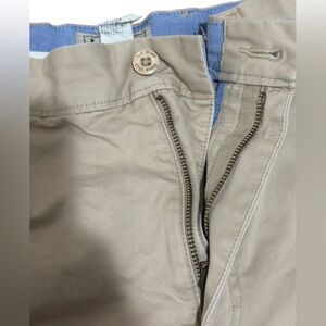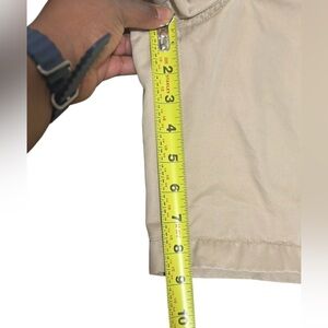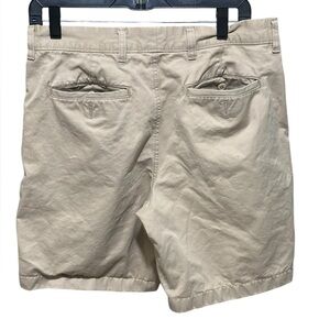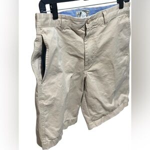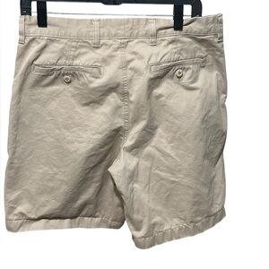 These L.L. Bean shorts feature a flat front design in a versatile tan color, perfect for casual summer wear. Made from a comfortable cotton blend, they offer a clean, straight hemline that sits around knee-length.