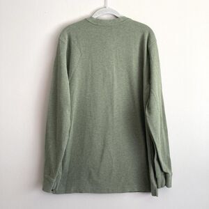 LL Bean Mens Thermal Waffle Knit Henley Shirt Size Large TALL Green Cotton. LL Bean mens thermal waffle knit shirt. Henley neckline. Long sleeves. 100% cotton. Green. Size large tall. Measured laying flat: 22.75 inches from pit to pit, 29.75 inches long.