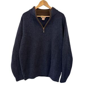 L.L. Bean Men's Thick Blue 100% Merino Wool 1/4 Zip Pullover Sweater Size XL