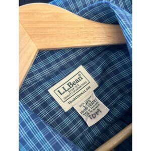 L.L. Bean Mens Traditional Fit Bering Blue Plaid Button Down Dress Shirt Large
