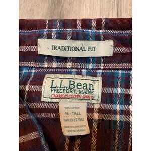 Traditional fit men's chamois cotton shirt from LL Bean. Medium-tall size with long sleeves, button-up design, and handy pockets. Perfect for casual or work wear.