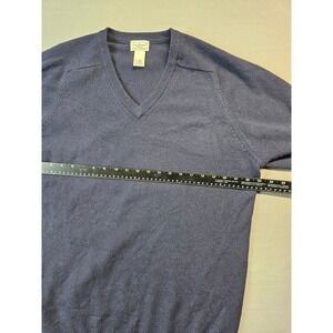 LL Bean Mens V Neck Sweater L Tall Navy Blue 100% Lambs Wool Pullover