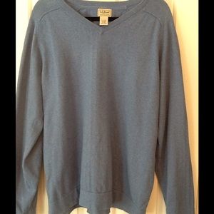 Gently used LL Bean men's V neck sweater size XXL. Light blue, 95% cotton, 5% cashmere