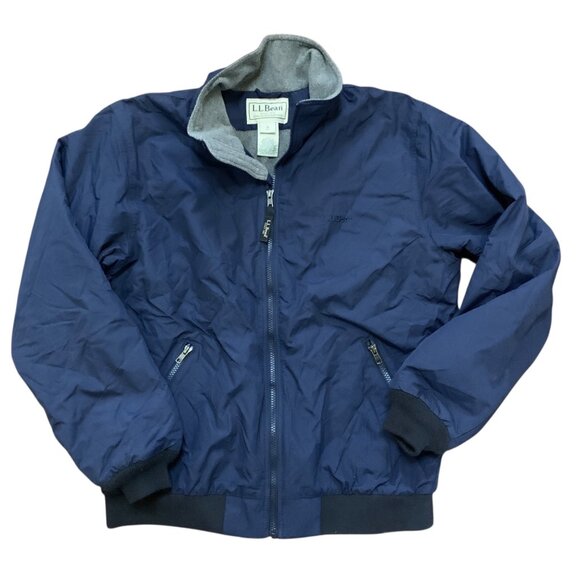 This L.L. Bean jacket combines a durable nylon shell with a soft fleece lining for comfort and insulation. Ideal for outdoor activities.