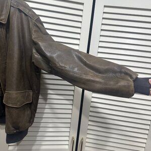 LL Bean Mens Vintage Goatskin Leather Bomber Jacket