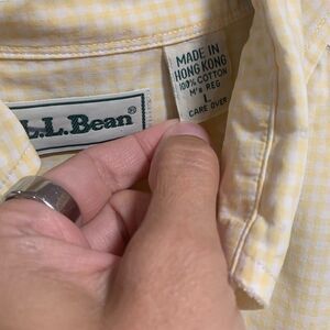 LL Bean Mens Vintage Yellow White Gingham Long Sleeve Button Up Shirt L Outdoors