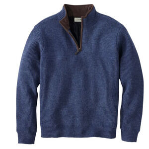 LL Bean Men’s Waterfowl Windstopper Blue Merino Wool 1/4 Zip Sweater-Size Large