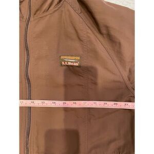 Stay comfortable and stylish with the LL Bean Men's Windbreaker in a versatile multicolor design. This large, regular-fit jacket is crafted from durable nylon, making it perfect for those breezy days when you need a lightweight layer. Featuring an adjustable hood and full zip closure, it offers practicality and ease of wear. The color block pattern adds a modern touch, making it suitable for casual outings, weekend adventures, or a brisk walk in the park. Lightly worn with a couple of material imperfections on the front.