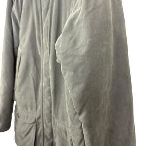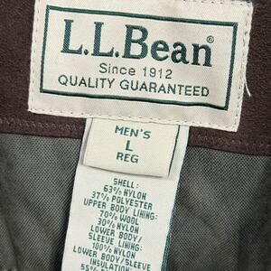 Wrap up in warmth and style with the LL Bean Men's Wool Lined Barn Jacket, a versatile addition to your winter wardrobe. The olive green coat, in a comfortable size large, features a durable nylon outer shell with a softshell fabric type that stands up to the elements. The interior is lined with cozy wool and insulated with polyester, ensuring heat retention during chilly outings. This parka-style jacket offers a solid pattern that complements any casual or workwear ensemble. It's equipped with both zip and snap closures for easy adjustment, and the thoughtful accents of a zipper add a touch of modern flair. Ideal for activities such as walking and hunting, or simply for everyday wear, this coat is designed for the practical and fashionable man.