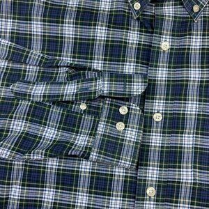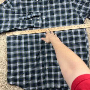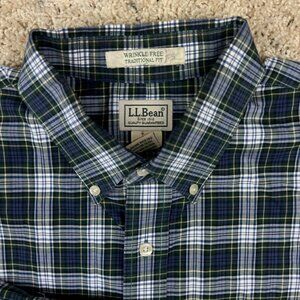 LL Bean Mens Wrinkle Free Blue Plaid long sleeve Button Up Shirt large 500539