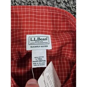 L.L. Bean Mens Wrinkle Free Red Check Shirt Slightly Fitted Long Sleeve Large Tall