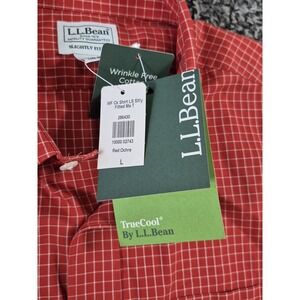 L.L. Bean Mens Wrinkle Free Red Check Shirt Slightly Fitted Long Sleeve Large T