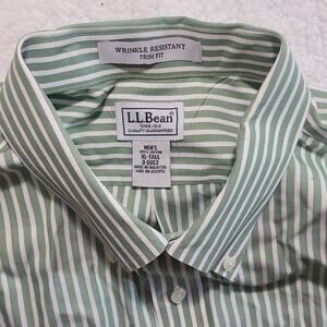 LL Bean Men's Wrinkle Resistant Trim Fit Short Sleeve Shirt Green Stripe XLT
